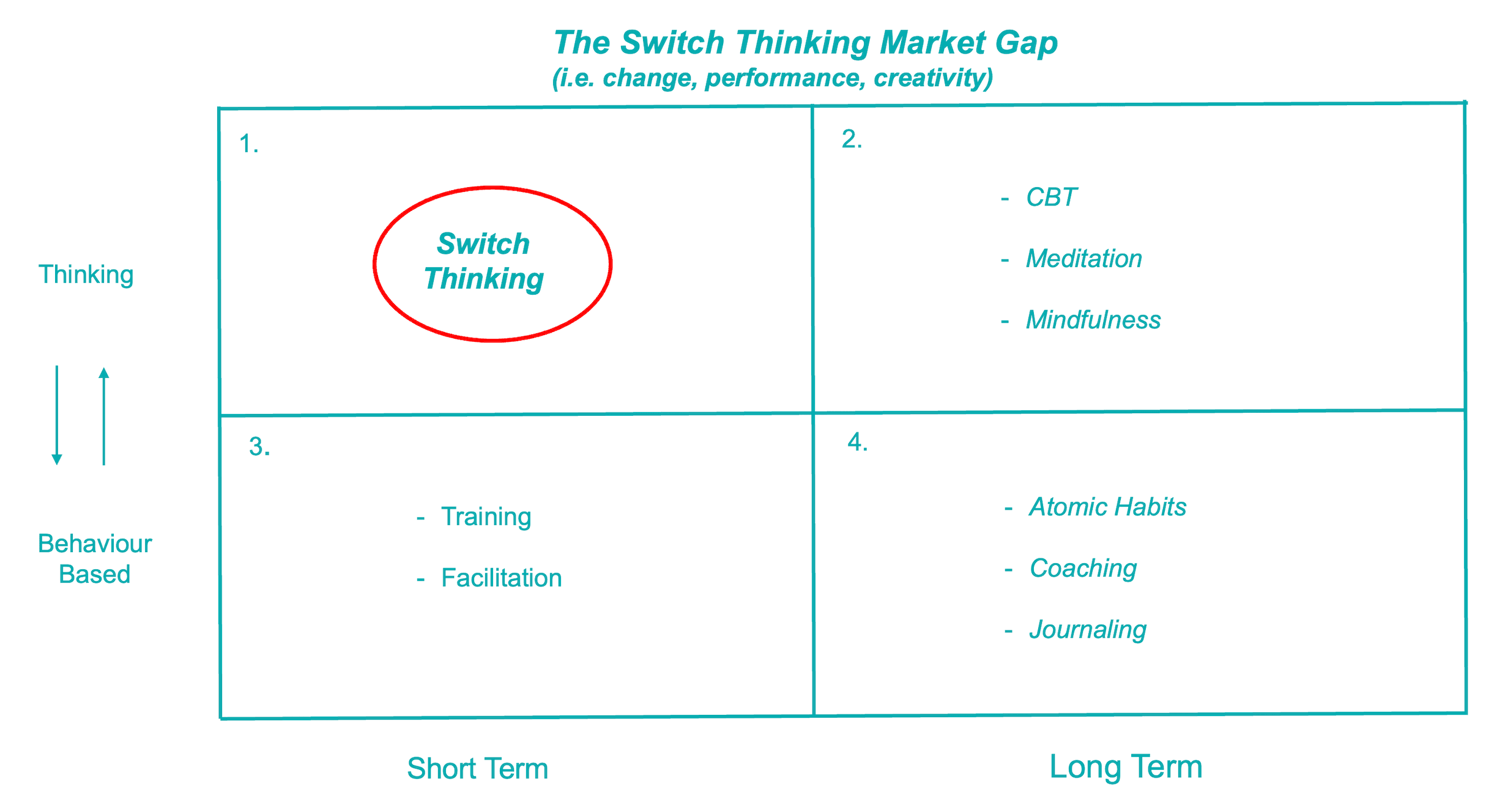 And as you can see (in my opinion) Switch Thinking sits alone compared to other approaches to change, creativity and performance.